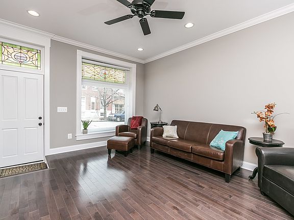 Gorgeous Building Character renovation with CHAP tax credit & PARKING! 3 finished levels with over 2000 sq ft. High end finishes including whole house audio, wood floors, exposed brick, gourmet kitchen with stainless steel appliances, granite counter & island. Center hall interior access to the rooftop deck. Beautiful upper level baths have double bowl vanities and custom tiled showers. Spacious owners suite has walk-in closet. 2-year builder service warranty included. Finished lower level has 3rd bedroom & 3rd full bath, finished storage room and additional space for office/walk-in closet. Owner/builder can be available for private tour.