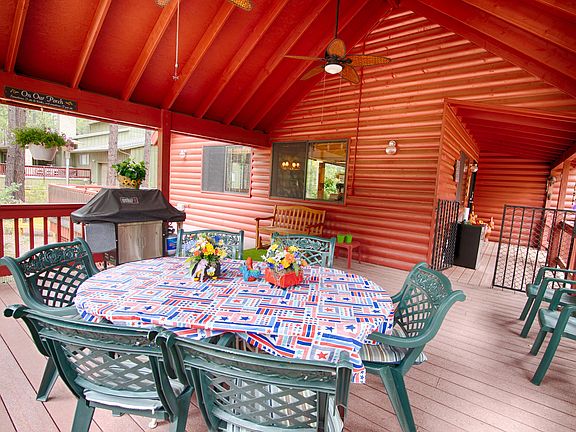 Beautiful log sided custom home in desirable Pinetop Country Club area. Great Walking/Hiking area. Walk to the National Forest or the lake nearby! Fabulous versatile floor plan of 3 bedrooms, + loft & 3 baths in main part of home. PLUS a 4th bedroom (or apartment) over the garage with own bathroom! Enjoy the Vaulted wood ceiling in the great room which is off kitchen w/granite countertops & w/tons of storage and a walk in pantry! Open bright floor plan w/clerestory windows overlooking the Many Mature Ponderosa Pine trees surrounding property. HUGE covered '' trex'' decks make it easy for Entertaining your family and friends. Home comes with all furniture (even the BBQ!) and has a large 2.5 car garage! Property backs to exclusive,gated Starwood Estates! 1st time offered for sale!