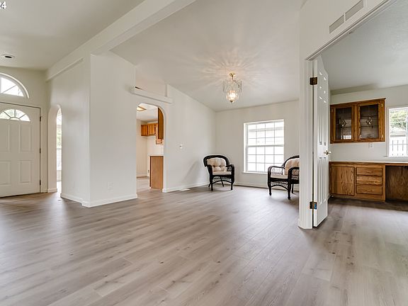 Beautiful, light filled home located in the desirable Gainsborough 55+ park. Featuring new luxury vinyl plank flooring and interior paint, spacious living room with vaulted ceilings, gas fireplace, arched doorways, formal dining room and an abundance of windows throughout. Large kitchen with walk-in pantry, Corian counters, built-in microwave and a charming breakfast nook. Separate utility room with sink and oversized 2 car garage with shop. Sliding doors off living room lead to a fully fenced yard with patio, covered deck and beautiful landscaping, creating an inviting outdoor space perfect for entertaining. Don't miss this special property!