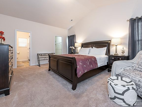 Spacious ranch home meticulously cared for with beautiful curb appeal and private back patio! Home is less than 10 minutes to downtown Gastonia and is near Rankin Lake Park - with playground, walking trails, and kayaking access! Welcome in to a beautifully landscaped entryway. Home opens with an open living, dining and kitchen area. Living room is fully carpeted with tall vaulted ceilings and tons of bright windows. Kitchen has bar seating that leads into living area perfect for hosting family and friends. Dining area off to the side for formal meals. Kitchen has dark cabinets, beautiful brown speckled granite, and S.S appliances. Primary bedroom is fully carpeted and also has vaulted ceilings plus walk-in closet and attached full bath. 2 additional guest bedrooms are perfect for families or for a home office / bonus room space plus full hall bath. Patio out back for grilling and enjoying cool evenings. Tree-lined backyard allows for plenty of privacy.