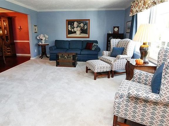 Walk into the entry hall with ceramic tile flooring that opens to the spacious living room or could be a great second family room w/ crown molding & large front window; entertainment sized dining room w/hardwood flooring, chair rail & crown. Updated eat-in kitchen w/beautiful maple cabinetry, SS appliances, back splash, hard surface counters and CT flooring. Large FR with a fireplace and access to the patio. A special feature is the first floor den w/wet bar and built-in shelving. Second floor boasts of 4 large bedrooms with ample closet space. The master has a walk-in closet. The baths are updated. The lower level has a game room with a pool table, storage room 12x11, and a laundry room 12x11. There is an oversized two car garage. The yard is private and wooded. The house is move in ready.