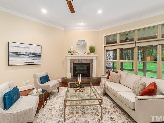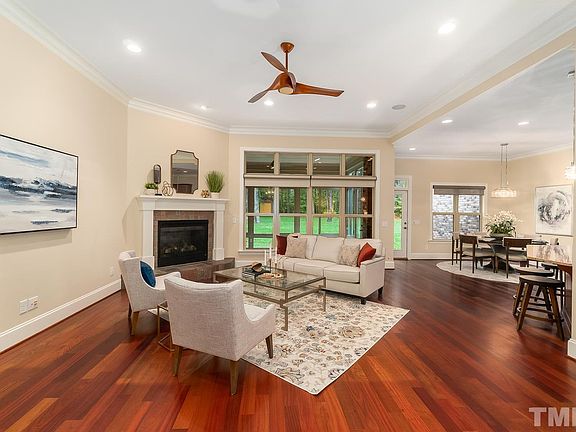 Fall in love with this brick custom home in N Raleigh. On one acre+ lot, walk through custom front door into open main floor living w/ Brazilian cherry floors. Gourmet Chef kitchen w/ SS appliances and access to formal dining. Living area w/ gas logs and 3 seasons room overlooking lush landscaping. 1st floor Master Suite w/ sitting area and 2nd fireplace, walk-in closet and large ensuite. Office and 2 add'l bedrooms on the 1st floor. Large bonus, 4th bedroom and bath on 2nd floor. Add'l 1500sf unfinished.