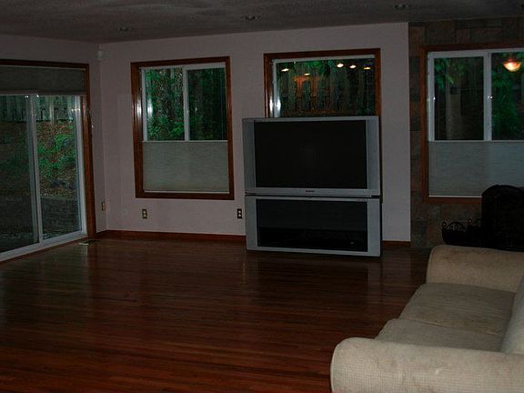 Lovely home on a wide cul-de-sac street. Kitchen remodel with granite, stainless appliances, pantry, and huge island. Kitchen open to Great room with large dining area and wood stove. Large private Master Suite upstairs with vaulted ceilings, walk-in closet with built in dresser, and bath with double sinks & double shower. Two more bedrooms - one is a full guest suite with two closets. Separate family room with slider to multi-tier deck. Lot has lots of trees and is lovely and private. Has a shop too!