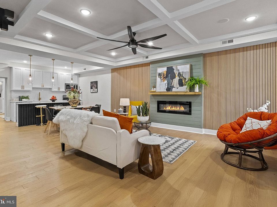 Charm meets modern convenience in this porch-front home offering 5 bedrooms and 4 baths across three levels, including a welcoming 1st floor Bedroom & full bath that's perfect for guest or multigenerational living. Light-filled interiors pair hardwood floors with neutral tones and stylish accents. The gourmet kitchen is perfect for entertaining, complete with a Samsung Smart Refrigerator (21.5” touchscreen), oversized quartz island, 5-burner range with microwave, designer backsplash, 42” soft-close cabinetry, elegant black-and-gold finishes, and a custom wine display. The spacious owner’s suite feels like a retreat with its cozy fireplace, dual walk-in closets, and spa-inspired bath featuring a extra large soaking tub, multi person double shower heads custon walk-in shower, and dual vanity. Two additional bedrooms, a Full bath, and 2nd floor laundry for everyday ease rounds out the upper level. The finished basement extends the living area with a family room thats great for entertainment, dry bar, bedroom, full bath, and walk-out access to a fenced backyard ideal for gatherings. Smart home amenities include a video doorbell, ceiling Bluetooth speakers, and backyard cameras. Peace of mind comes with recent updates: new roof, plumbing, HVAC, and 200-amp electrical, all fully permitted and inspected. Conveniently located, this home is less than 3 miles from 3 separate major shopping malls in either direction with popular restaurants, 2 miles from the Baltimore Zoo and the expansive Druid Hill Park, 3 miles from Forest Park Golf Course, 2 miles from Pimlico race Course where Preakness is held, 4 miles from Penn Train Station, and about 7 miles from the Baltimore Ravens & Orioles Stadiums. It’s also within walking distance ( 2 miles) Druid Hill Park, which offers numerous amenities, including playgrounds, tennis courts, ball fields, a frisbee golf course, a pool, basketball courts, greenhouses, picnic areas, the Howard Peter Rawlings Conservatory and Botanic Gardens, a Zen Garden, an urban greenway park, the Jones Falls Trail, City Farms Garden, Safety City, and the Lakeside Loop Trail around Druid Reservoir. The home provides easy access to major highways, I-695, I-70, I-83, and I-95. Seize the chance to call this striking residence your own, where modern luxury meets smart design. Schedule a showing today and experience the ultimate in contemporary living.