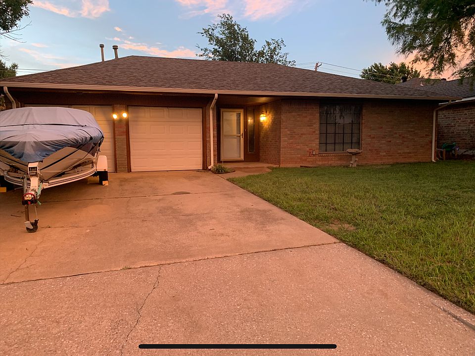 2000 Square Foot 3 bedroom, 2 full bathrooms, with office. Freshly painted and slightly remodeled rental home in quiet neighborhood within Moore Public Schools. Large covered back patio for relaxing with a fenced back yard. 2 car garage with working garage door openers. Rent is $1550 and Deposit is $1550. 1 year lease. Pets maybe considered. Comes with Dishwasher, Stove, and Refrigerator. There is no Washer or Dryer in the home. Available August 1st. Renter pays for all utilities (water, garbage, electric, and gas). No smoking allowed inside the home. Renters insurance is not provided by owner.