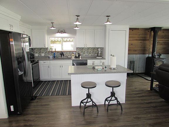 New Floors, New Exterior & Interior Paint, New Woodstove, New Kitchen cabinets & Island, New countertops, New kitchen sink, All new Appliances, New Pella windows, New Mini Split for heat/cool, New toilets and vanity's, all New light fixtures throughout. New $4200 Shed in back. Water Heater replaced in 2017. Roof replaced in 2014. Park is 55 and older.