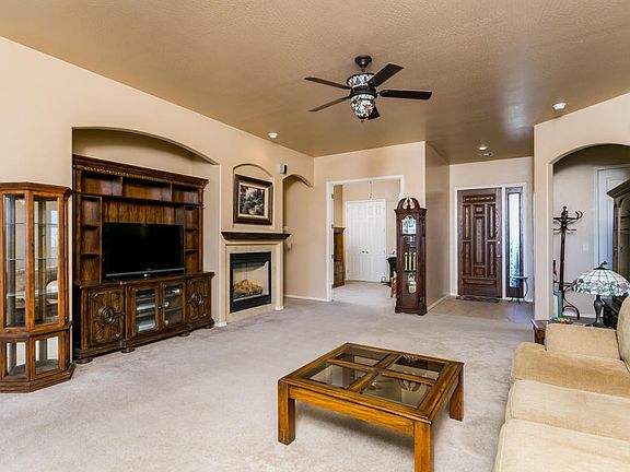 - Interior Features: Ceiling Fan(s), Fireplace-Gas, Live on One Level, Master On Main, Raised Ceilings 9+ft, Smoke Detector(s), Walk-In Closet(s), Wash/Dry Connection, Security System-Wire, Jetted Tub, Counters-Solid Srfc, Garage Door Opener(s)