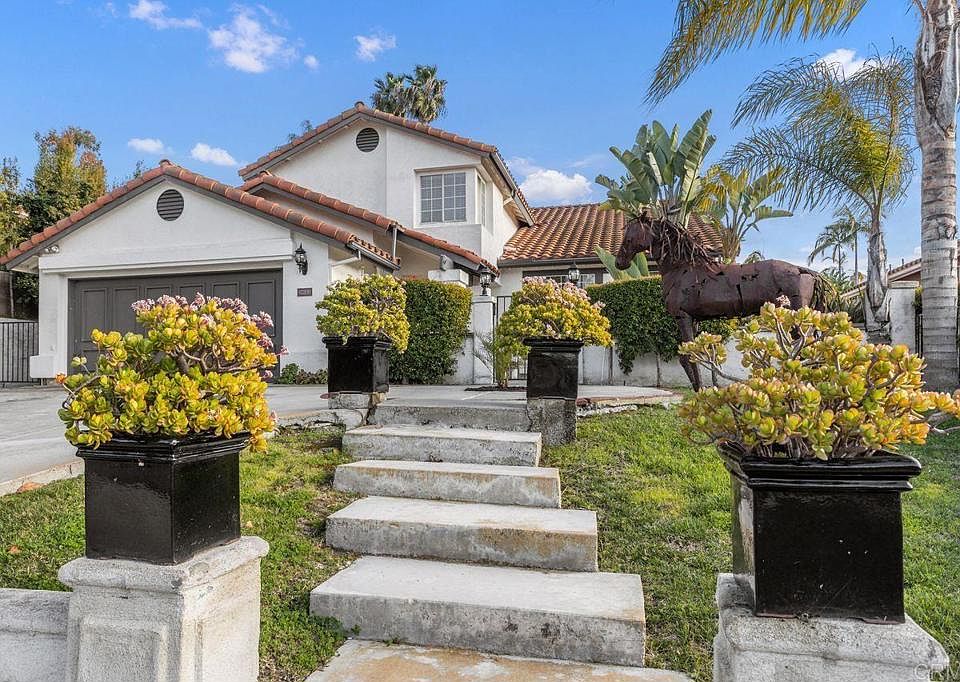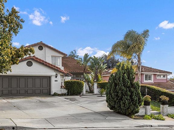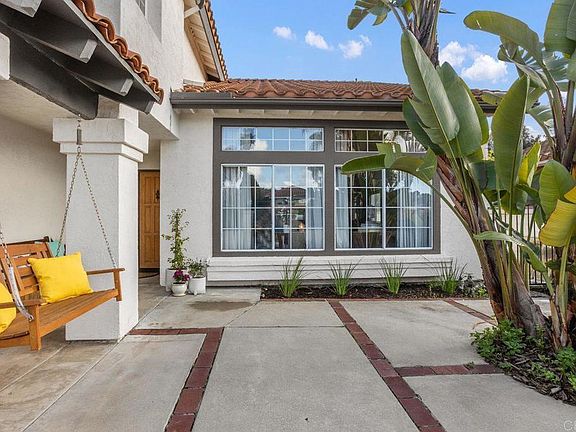 Rare opportunity in The Summit! This 4 bed, 3 bath Mediterranean Style home sits on a quiet cul-de-sac in one of Carlsbad's most desirable neighborhoods. The inviting front courtyard leads you into the formal living and dining room which are open and airy and have vaulted ceilings. Kitchen is nicely laid out and has ample cabinet and walk in pantry storage. Primary bedroom is spacious, has a balcony with a view and 2 walk-in closets as well as an en suite bathroom with a jacuzzi tub and separate vanity area. Other features include 1 bed, 1 bath and laundry on the 1st floor and an attached 2 car garage and thermal solar panels for the pool. Entertainer's backyard is terraced with a covered patio, a private in-ground pool, hot tub and a bonus pool house with a sauna and bathroom. Mature trees include 3 avocado, persimmon, almond and fig. The Summit community has no HOA or Mello Roos. The home is zoned for Hope Elementary, Calavera Hills Middle, Carlsbad High School and Sage Creek High School, all within 2 miles. Minutes to the coast, freeways, shopping and restaurants.
