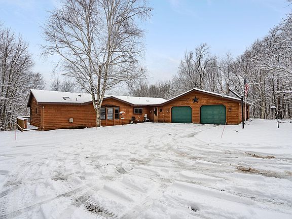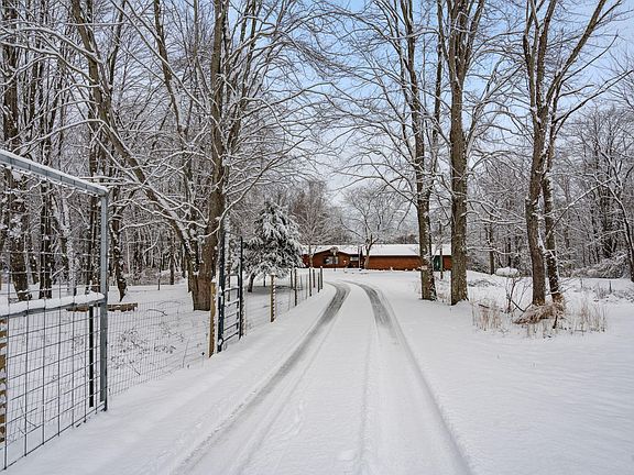Discover a captivating and peaceful gated retreat with over 400 feet of stunning Hart Lake frontage. As an added bonus, this property features a spacious 40x56 pole barn equipped with a tall overhead door, perfect for housing all your recreational vehicles, along with a Tesla charging station!
