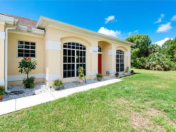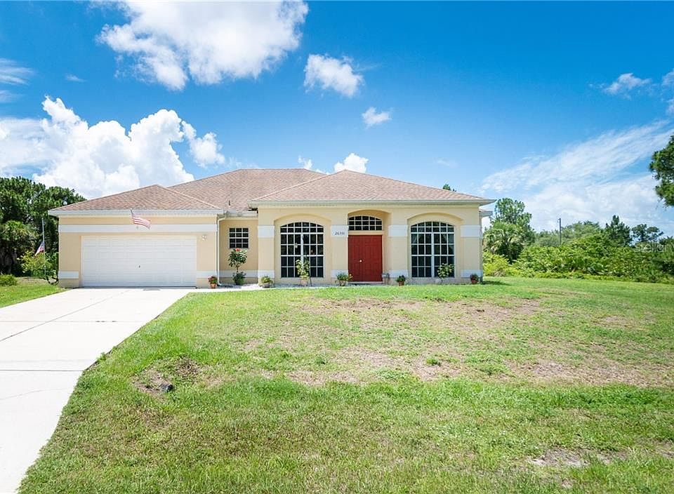 TRIPLE LOT! Spacious 3 bed + den, 2 bath home located in quiet Punta Gorda neighborhood. Home sits on 2 lots with attached third lot adding room for a pool or area to park RV or boat. Double door entry leads into split floor plan featuring high ceilings, arched entryways, formal dining and living areas plus family room with new wood laminate flooring, open kitchen with ample cabinetry for storage, breakfast bar, closet pantry and casual dining area, separate private office plus lanai has been enclosed increasing the living area and can make a great bonus or play room. Master suite offers slider to bonus room, his and hers closets and private bath with dual sinks, garden tub and walk-in shower. Additional features include two guest bedrooms, separate full guest bath, inside utility room, hurricane shutters with impact window in bonus room, exterior repainted in 2016, new water softener, well and aerobic septic system. Very private location close to shopping, restaurants, boating, golf and downtown historic Punta Gorda with community events and entertainment. Don't miss this opportunity! Call for your private showing today!