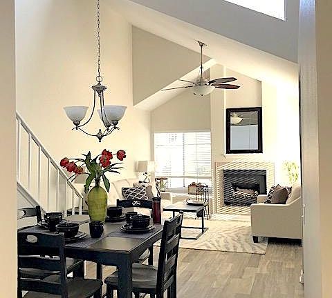Good Vibes in Foothill Ranch! 2 bed/ 2 ba condo, a Loft or den with a large closet that can be used as a 3rd bedroom or officr , 1 Car Garage w/storage and plenty of open space parking, open floor plan, corner location w/ wrap around windows, high ceilings light & bright. Large balcony with plenty of room for outdoor patio set and BBQ, Spacious living room with fireplace & dining area, central air & heating, large kitchen with inside Washer/Dryer and Refrigerator, stone counter tops, laminate wood flooring, carpeting/ceiling fan in all bedrooms. Walk-in closet in master bedroom, no one above or below, well maintained condo complex with a community pool and play ground, near City shopping and restaurants..