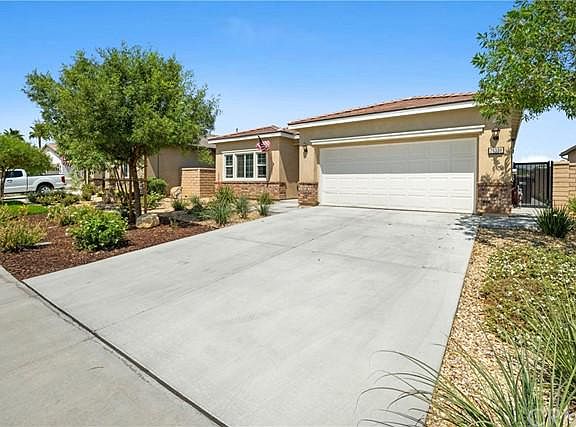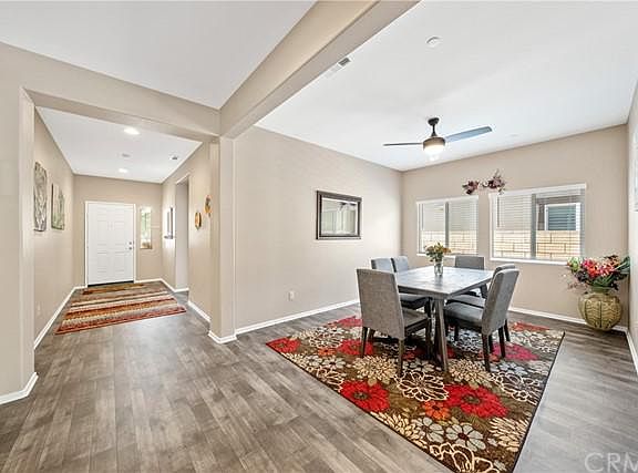 Gorgeous 2 bedroom, 2.5 bathroom with a bonus room single story Solar home located in the 55+ Holiday Homeowners Association in the city of Menifee. This 2015 square foot home was built in 2018. The formal entry to this home opens into the dining room with half bathroom on the right. The living room and kitchen is beyond the large formal dining room. The kitchen is enormous with wood floors, granite counters with glass tile backsplash and an island with seating for 3. There is a ton of cabinet space and counterspace with stainless steel appliances and a pantry. The master bedroom is at the back of the home with a bathroom that features dual sinks, a large walk in closet and walk in shower. The 2nd bedroom is a nice sized room with an ensuite bathroom with a walk-in shower. The bonus room/den/office is between the two bedrooms just adjacent to the guest bathroom. Fantastic low maintenance backyard with a California room with misters overlooking the backyard. Spacious laundry room with cabinets and a countertop, perfect for folding clothes. Finished 2 car attached garage with epoxy floors. Additionally, this home has recessed lighting, top quality carpeting, quality wood like vinyl flooring and leased solar that is only $65/month. Completing this beautiful home's charm is the enjoyment of the community pool, spa, gym, clubhouse, and more. With freeways, shopping, entertainment, and golfing nearby, you'll enjoy recreation and convenience offered in this premium home!