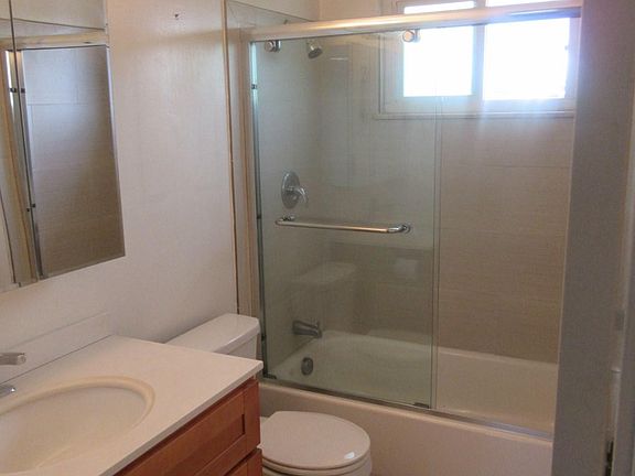Clean, modern, very attractive. Large 2 BR, 1 BA Fully remodeled unit (925 sf). in completely redone modern 1967 triplex. Sunny. Bright. New kitchen: cabinets, granite counters, disposer. New flooring. Double pane windows. Mini-blinds. Good storage throughout. Private enclosed balcony. Clean. Move-in ready. Access is gated and secure. Grounds inside are landscaped and maintained. Top story rear apartment has a southern orientation. No street noise. Private garage and driveway. Coin-operated washer-dryer in garage exclusively for this unit. Electrical panel in garage easily adaptable for 110/240V EV/Hybrid plug-in. New Walgreen plaza with food shopping and strip mall stores half a block away. Additional strip malls near. Diverse restaurants close. Eastmont Mall is a short drive. Hop, skip and a jump to 580 and 880. Easy drive to Fruitvale and Coliseum BART. Owner pays landscape maintenance, garbage, house electric, water and hot water. Occupant pays gas and electric for their unit only. $3,400 security deposit may be paid in two equal installments. Half upon lease-signing; second half on 6th week of occupancy. Security deposit may not be used as last month's rent. One year lease is required. No Smoking. Pets not permitted. Section 8 or vouchers not accepted at this time. No fee credit check required of each applicant over 18. No eviction history. Tom. 415-730-2045. Open House: Saturday, 5/26. 11am - 12:30 (Private showings are difficult as I don't live in Oakland) Owner pays water, hot water, garbage, landscape maintenance. Occupant pays electric and gas for their unit only.