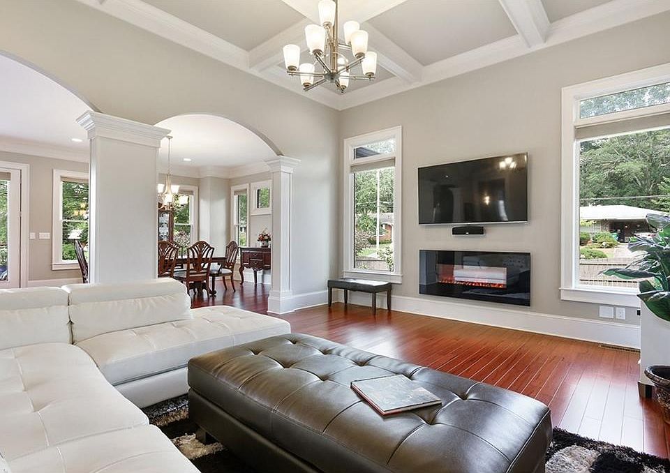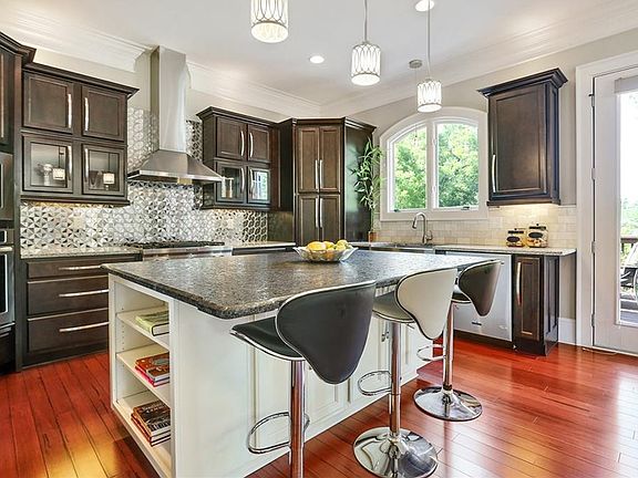 This home embodies opulence with no detail overlooked including heavy trim work, coffered ceilings, bamboo flooring, high end finishes. The main floor boasts soaring ceilings, entertaining spaces on all levels, chefâs kitchen with views to the dining room, patio & living room. The 2nd floor has more entertaining space w/a media room & walk out patio. The master suite on the main level opens onto the back patio, features an expansive closet & the bathroom looks like a show house. The full unfinished basement is ready for a full kitchen, bathroom, bedroom & so much more.