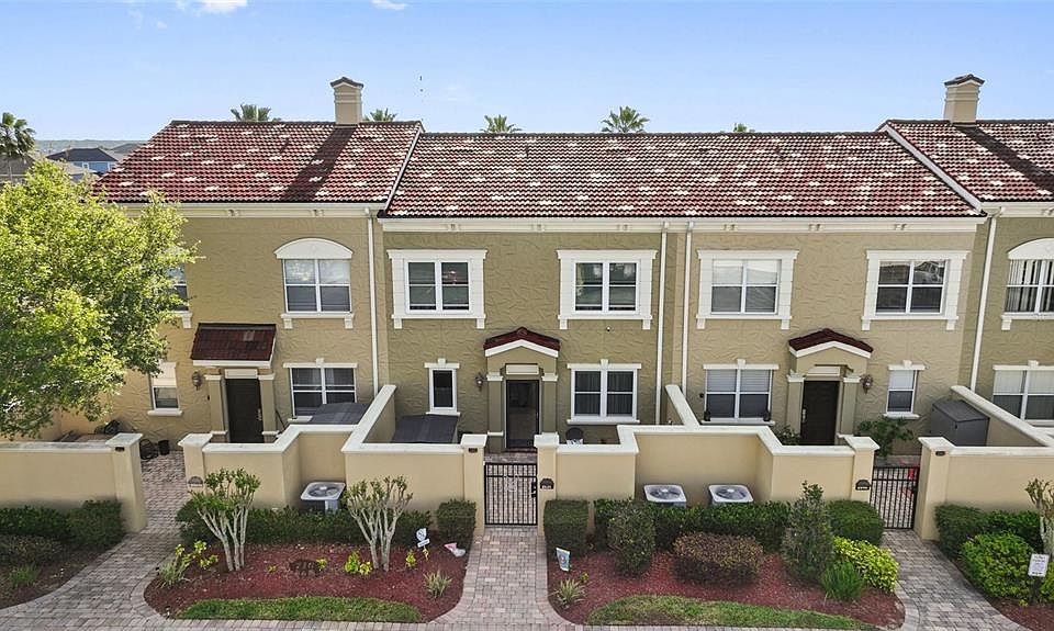 Welcome to your own slice of paradise! Step into luxury living with this impeccable Mediterranean-style courtyard villa, where every day feels like a vacation. Privacy abounds as you enter the serene courtyard, setting the stage for a life of tranquility and relaxation. This stunning townhouse boasts an open plan design with 9-foot ceilings adorned with elegant crown molding, creating a spacious and inviting ambiance. The living and dining areas seamlessly blend, perfect for both entertaining guests and cozy nights in. Calling all chefs! The kitchen is a culinary enthusiast's dream, featuring 42-inch wood cabinets, stainless steel appliances, and exquisite granite countertops. Prepare gourmet meals with ease and style in this tastefully appointed space. With two primary bedrooms—one conveniently located on each floor—luxury and comfort are always at your fingertips. Wake up to breathtaking views from the beautiful balcony in the upstairs primary bedroom, the perfect spot to savor your morning coffee and embrace the day. Outdoor living is a breeze with both a private courtyard patio and a screened-in patio off the back of the townhouse, providing ample space for relaxation and entertainment. Enjoy the Florida sunshine or dine alfresco in the comfort of your own home. This home is packed with upgrades, including wood floors, brand new double-pane energy-efficient windows, screened patio, and hearing-impaired security lighting, ensuring both style and functionality meet your every need. Discover resort-style amenities right at your fingertips, including a clubhouse, fitness center, kitchen, open event area, and a heated pool—perfect for unwinding and creating cherished memories with friends and family. Centrally located to shopping, medical facilities, and major attractions, this home offers the ultimate in convenience and accessibility. Don't miss the opportunity to make this your forever home—schedule a viewing today and start living your best life in paradise!