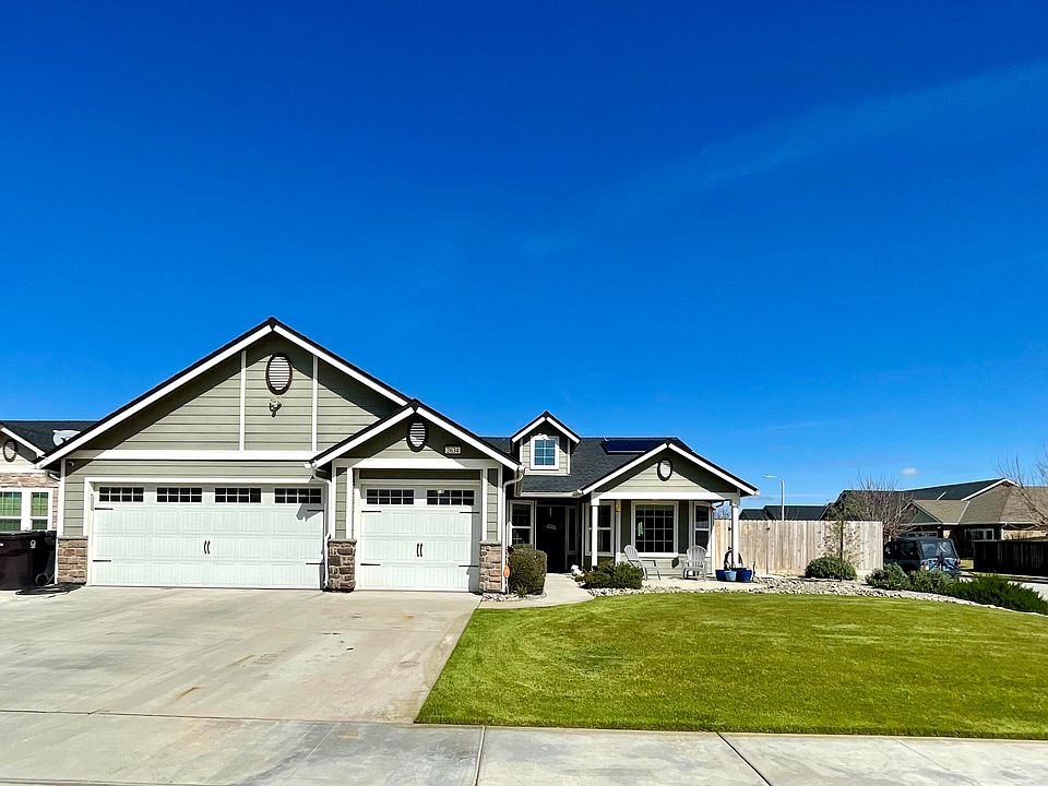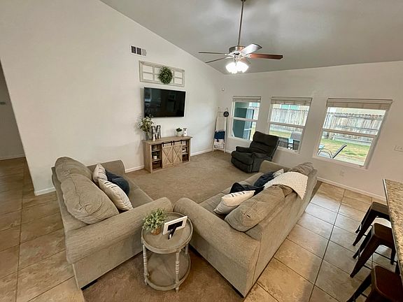 Welcome home! Come see this beautiful, 4 bedroom, 2 bathroom home on a large corner lot! This one owner home, built in 2015 shows the pride of ownership. Features include, 4 large bedrooms, open concept living room, a formal dining room, plus a 3 car garage. The kitchen has a large island and opens into the living room and the cozy breakfast nook. Storage, storage and more! The 2nd and 3rd bedrooms have custom closet shelving, and the 4th bedroom has a walk-in closet. Each bathroom has a dual vanity and linin closet, plus the primary bath as a large soaking tub. Laundry room has built in counters over the included washer and drier! The large garage has built-in shelving and over the garage storage. The backyard is ready to entertain and has a playground area with a sandbox, extra lighting, covered patio, and an additional cemented area for entertaining or barbecuing! The home is equipped with an alarm system with sensors on all windows and exterior doors with 3 exterior cameras. The garden is decorated with drought tolerant landscaping and the irrigation timer is Wi-Fi enabled and has its own app for custom watering scheduling. You will love this home!