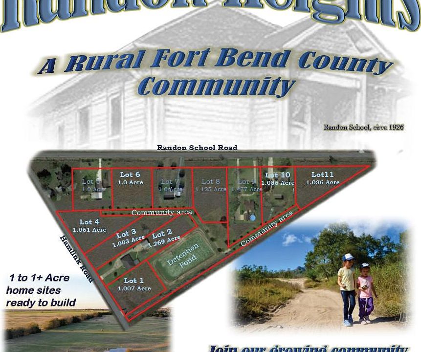 MAXIMIZE YOUR OUTDOOR LIVING! Blue skies, fresh air, and wide-open spaces...Randon Heights is in just the right location of Fort Bend - Close to 90A, Spur 10, US59/I-69 and Brazos Town Center. Dream big on "Lot 4" with 1.061 acres and a lifestyle filled with the simple pleasures of country living, including fishing in the nearby pond. This sprawling community offers a place to explore nature right from your own back yard and it's located in the highly sought after Lamar Consolidated Independent School District. Enjoy light restrictions (No mobile homes and minimum 1800.00 Sq. Ft. construction), choose your own builder and build on your timeline. Bring the boat and RV and call it home! Call for your appointment today. Builder inquiries are welcome.