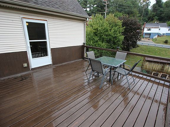 One Level Living offering Quality Hardwood Floors & Plaster Walls. Plenty of Wood Cabinets in Spacious Kitchen. Newer Stainless-Steel Appliances included. Door to side Deck & Ceramic Tile Floors also in Dining Room area w/ Glass Panel Back Door which leads to Awesome 20x20 Deck overlooking Huge Back Yard! Hardwood Floors in Living Room just off Covered Front Porch. 1st Floor Bedroom w/ Hardwood Floors. Updated Full Bathroom. Massive 2nd Floor Bedroom offering 2 areas of space. Multiple Rooms in Basement which could easily be finished for a Game Room in future. Glass Block in Basement plus a Pittsburgh Potty & Door to outside. Additional Storage under deck plus a shed. Firepit in backyard & Garden Bed. Backyard is almost 1/4 Acre and goes all the way to backroad. Plenty of off-street parking in long driveway & parking pad in front.