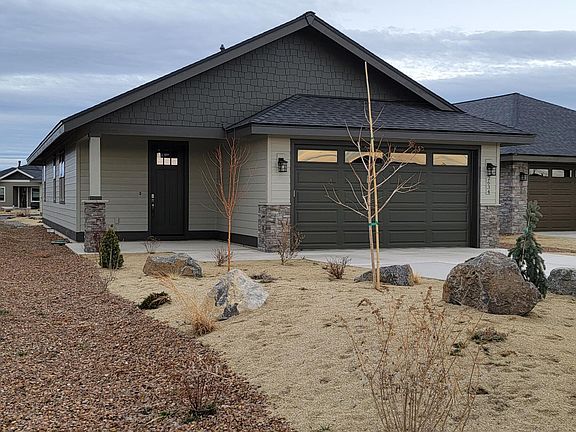 LOT 38, the Juniper floor plan in Dry Canyon Village, Central Oregon's premier age-restricted 55+ gated community. The home boasts a covered front patio at it's entry, a kitchen with solid quartz counters, 3 piece Whirlpool appliance package, undermount sink and a large peninsula with breakfast bar. Just off the dining room is a small covered back patio. The primary bedroom has a walk-in closet, the primary bathroom features a large linen closet and a mud-set tile shower. The second bedroom is perfect for an overnight guest or office/den space. An upgraded trim package with fully wrapped windows, vinyl plank flooring, 8' passage doors, laundry closet and double car garage finishes the interior features. The community center will feature a yoga studio, free weights, locker room, indoor lap pool, outdoor pickleball courts, and covered patio with full mountain views. This is a true community neighborhood.