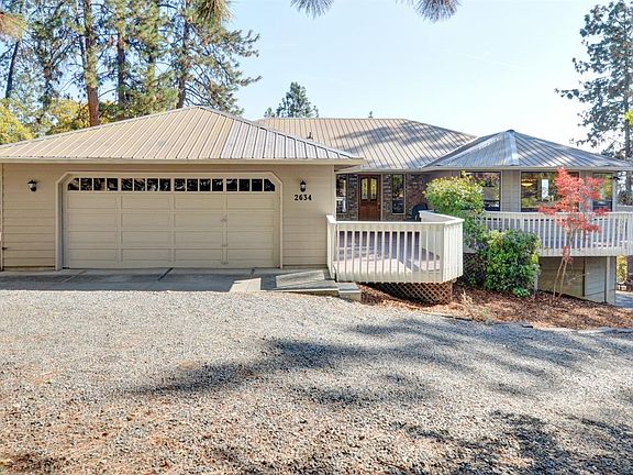 Experience breathtaking views of the city lights from this private, tree lined property with approximately 2 acres. Custom solar powered entry gates provide secure access. Entering the home, you'll be bathed in natural light throughout the home from the generously sized windows and skylights. Vaulted ceilings in the living room give a nice open feeling while a new coat of paint keeps it fresh. Natural stone faced fireplace is ready to provide many cozy evenings. Large dining area, breakfast nook and a roomy kitchen give plenty of room to entertain. Kitchen features hardwood cabinets, new stainless steel appliances and a large island cooktop. Master bedroom is spacious with a large walk-in closet. Wrap-around deck is newly painted offering a stunning view with a soothing stone pond and waterfall, bring your koi. RV parking with hookups and an additional 2-car garage provides plenty of room for other vehicles or a great workshop. See attachment for additional amenities.