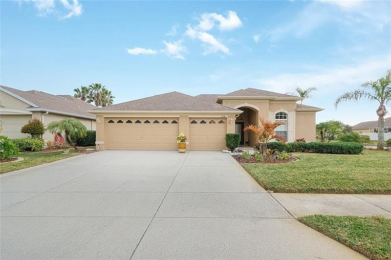 Beautiful home on a corner lot for sale in the neighborhood of Key Vista. This 4 bed and 3 bath home showcases a 3 car garage, mature landscaping, side walk, covered front entry way, an intercom system, outdoor back yard speakers, recess lighting in every room, 5 inch crown molding throughout and a fenced in yard. Enter your new home to an open spaced foyer with dining room area and master bedroom located in the front of the home. This master bedroom features a sliding glass door to the screened in lanai in the yard, master bathroom and two walk in closets. Its master bath provides two sinks, two vanities, a walk in shower, separate tub and water closet. The kitchen is centrally located with an open floor plan to the living room and sliding glass doors to the outdoor screened in lanai. The kitchen features new stainless steel Samsung appliances including a dishwasher, oven, range, refrigerator, double under-mount sink with disposal, eat in breakfast area and breakfast bar top. Down the hall to the left of the kitchen are two bedrooms, a full bathroom and inside utility featuring plenty of cabinet space with access to the garage. Past the living room you will find a separate hallway housing a single bedroom and full bathroom with access to the back yard. Key Vista clubhouse provides its residences with private tennis courts, volley ball courts, a playground, fitness center, event rental space including a kitchen and granite counter top bar, card playing tables, and a large in ground pool with a spa.