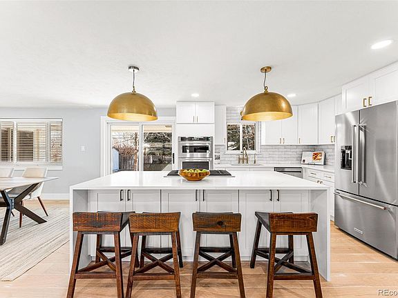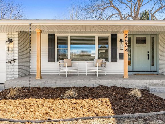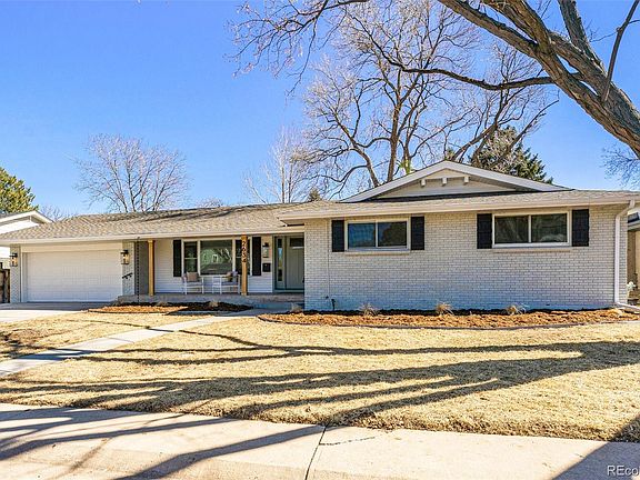 Situated on nearly a 1/4 acre lot, this gorgeous 5 bed 3 bath ranch home has been refreshed inside and out! The newly painted brick, front door and shutter accents modernize curb appeal while maintaining its late-60's charm. Upon entry you'll find an exquisitely bright and open floor plan, perfect for entertaining and today's modern lifestyle. The beautiful chef’s kitchen features high end SS appliances, abundant quartz-topped soft-close cabinetry, and a large waterfall island accommodating the gas cooktop and seating for 4. Elegant engineered hardwood flows into the eat-in and formal living areas centered around the fireplace, adorned with custom built-ins, floating shelves, extra storage and beverage fridge. Additional living space off the back allows for more intimate gathering, highlighted by a second brick fireplace with slat wall accents, custom wood beams, and access to the covered patio and fenced-in yard. The primary retreat features a luxurious ensuite bathroom with a marble-tiled rain shower and quartz-topped double vanity. The main floor is rounded out by two spacious secondary bedrooms and a jovially rejuvenated full bath. Functionality extends to the fully finished basement, boasting two bedrooms serviced by a 3/4 bath, and flows into a generous flex area featuring an aesthetically pleasing accent wall. Ample storage and the finished laundry/utility room cap off the lower level. The private backyard offers plenty of space for planting, playing, and hosting. A matching shed ensures sufficient storage for all the toys, lawn and gardening tools. Recreational activities abound with the High Line Canal weaving through the neighborhood, the Colorado Athletic Club and Bible Park just 2 blocks away, close proximity to Cherry Creek State Park, Wellshire Golf Course and the Cherry Creek Country Club. This is an ideal home for anyone looking for a close-knit neighborhood with easy access to dining, shopping, and major roads/highways around and out of the city.
