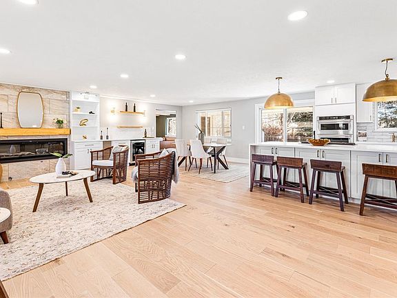 - Description: Gas Fireplace W/ Mantle & Tile Surround, Custom Built-Ins & Cabinets, Floating Shelves, Beverage Fridge,Engineered Hardwood, Recessed Lighting.