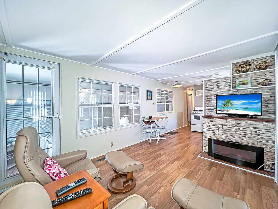 LOWEST LOT RENT IN TOWN!! Located in Beautiful Naples Mobile Home Park, this partially furnished 2 Bed / 1.5 Bath home comes equipped with an oven/range, microwave and NEW fridge. The homes laminate and vinyl flooring is in great shape throughout entire home. Oversized spacious a/c Florida room is great for enjoying your coffee in or to entertain guests. Other features that come with this home are and built-in cabinets. Bedrooms offer plenty of natural lighting and an En-suite bathroom in master bedroom. Some upgrades include NEW A/C compressor in 2023. Hurricane shutter and hurricane cables included and personal parking space for your needs. Wonderful location, within walking or biking distance to beach, shopping, and restaurants; bright and airy, low-maintenance, and energy efficient home; friendly community, and great maintenance and management team. Quiet and safe. One mile from the beach, only $407/month, swimming pool, clubhouse, beautiful pond, wonderful neighborhood, central air, convenient location, close to fire station, close to hospital, in city limits of Naples. Come see for yourself and come live the Florida lifestyle in style!