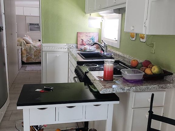 Updated one bedroom one bath mobile home in Naples Mobile Home Park. This is a 55 and up age restricted community with lot rent of $346 per month which includes yard maintenance, trash, and use of all amenities. This park is located in a great location just off US 41, North and is about a mile to the beach! With the enclosed Florida room added on, the total square footage of this home is approximately 744 square feet. The kitchen counters, sink, and stove have all been updated. There are lots of drawers and cupboards including a pantry in the kitchen. Adjacent to the kitchen is a small dining table and easy chair for relaxing. Down the hall is the bathroom with an updated vanity and bedroom. The added on Florida room has vertical blinds on one whole wall and an added center wall to hold the TV. Behind this small wall is a laundry room with full size washer and dryer and also a large walk in closet for additional storage area. All the flooring was updated with beautiful vinyl tile for easy care and cleaning. This home is being sold furnished and is vacant and ready for a full time resident or seasonal use. Call for more information or to schedule an appointment to personally take a tour of the home.