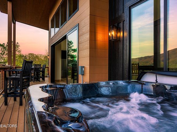 *Seller is offering $20k toward buyer rate buy down/closing costs!* STUNNING FULLY FURNISHED NEW CONSTRUCTION CABIN WITH MAJESTIC MOUNTAIN VIEWS (SLEEPS UP TO 12)! This turnkey cabin has been professionally designed and exudes luxury at every turn. With a rental projection of $150k, this property is not only a dream getaway but also a lucrative investment. Walking through the front door, you will be in awe of the 16 ft multi-sliding door leading out to the large deck for soaking in the breathtaking Smoky Mountain views & bringing the outdoors in. This new & cozy cabin features soaring tongue & groove ceilings, a floor to ceiling electric fireplace, an oversized island in the fully stocked kitchen for guests to gather & dine. The chef's kitchen boasts luxury appliances including a Koolmore range with convection oven & leathered granite countertops. The main level also features an open layout with two oversized ensuite bedrooms with custom tile showers & spacious closets, and the laundry area. Downstairs, this entertaining cabin offers a large rec room with a wet bar & the ultimate game area (pool table, card table, air hockey, shuffleboard, full size chess & corn hole boards), oversize theater room complete with recliners and beanbags, a bedroom, full bathroom, bunk area with two custom built-in twin over full bunk beds, and a kids play area fully stocked with toys and books. One of the home's most desirable features is the double deck with multiple seating areas, custom hot tub, fire pit table, all Adirondack furniture, and a bar for enjoying meals and relaxation with the ultimate view! 2638 Whipoorwill Hill Way is also available for purchase!