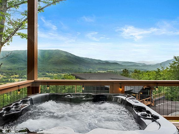 *Seller is offering $20k toward buyer rate buy down/closing costs!* STUNNING FULLY FURNISHED NEW CONSTRUCTION CABIN WITH MAJESTIC MOUNTAIN VIEWS (SLEEPS UP TO 12)! This turnkey cabin has been professionally designed and exudes luxury at every turn. With a rental projection of $150k, this property is not only a dream getaway but also a lucrative investment. Walking through the front door, you will be in awe of the 16 ft multi-sliding door leading out to the large deck for soaking in the breathtaking Smoky Mountain views & bringing the outdoors in. This new & cozy cabin features soaring tongue & groove ceilings, a floor to ceiling electric fireplace, an oversized island in the fully stocked kitchen for guests to gather & dine. The chef's kitchen boasts luxury appliances including a Koolmore range with convection oven & leathered granite countertops. The main level also features an open layout with two oversized ensuite bedrooms with custom tile showers & spacious closets, and the laundry area. Downstairs, this entertaining cabin offers a large rec room with a wet bar & the ultimate game area (pool table, card table, air hockey, shuffleboard, full size chess & corn hole boards), oversize theater room complete with recliners and beanbags, a bedroom, full bathroom, bunk area with two custom built-in twin over full bunk beds, and a kids play area fully stocked with toys and books. One of the home's most desirable features is the double deck with multiple seating areas, custom hot tub, fire pit table, all Adirondack furniture, and a bar for enjoying meals and relaxation with the ultimate view! 2638 Whipoorwill Hill Way is also available for purchase!