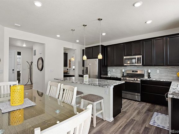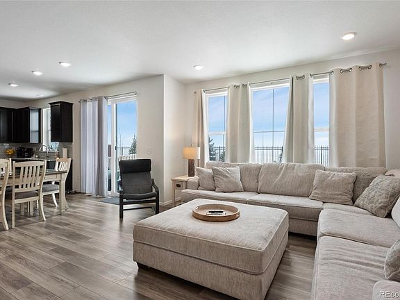 Welcome to this beautifully maintained home in Adonea! As you enter enjoy the open space with an abundance of natural light, gorgeous upgrades and finishes throughout including stainless steel appliances, gas stove, granite countertops, a beautiful island and much more. The open kitchen & dining area is great for family gatherings. The upper floor includes the master suite with granite countertops, walk-in closet, easy access to the laundry room. Immaculate front and backyard. You are a short walk to the neighborhood park, clubhouse and city pool. Easy access to Southlands and DIA. If you are looking for a quiet neighborhood out of the city but still easily accessible to all parts of Denver, this is the home for you. Welcome home.