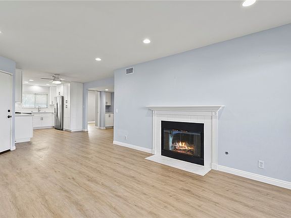 Welcome to the peaceful gated Villorio community! This light and bright single level condo offers an open floor plan with 2 bedrooms and 2 bathrooms. Upon entering, you will be greeted by a tastefully remodeled kitchen, complete with ample cabinet space, soft close cabinet doors and drawers, sleek quartz countertops, under-cabinet lighting, appliances, and a stylish ceramic tile backsplash. This home boasts a cozy fireplace and luxury vinyl flooring throughout. The primary bathroom has been revamped with newer flooring, cabinetry, and a modernized shower. Additionally, PEX plumbing was installed in 2023. Enjoy the private patio, great for entertaining guests, sipping morning coffee, or relaxing and enjoying the view! Plus, a single-car garage with plenty of storage is conveniently located near the unit, with additional open parking. This condo is nestled in a prime location, with close proximity to the 241 Toll Road, shopping, plenty of restaurants, schools, and scenic trails—offering the perfect balance of privacy and convenience.