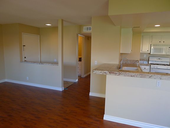 Ready for immediate occupancy is our newly renovated corner unit, 2 bedroom / 2 bath, 1st floor condominium for $1,650 per month for a minimum of 1 year lease. There is a detached garage with overhead storage. The condo is in a cozy but spacious gated community with plenty of parking and community pool & spa. At the back of the patio is a large grassy area. There is no smoking on the premises. No pets. There will be a $20 non-refundable application fee per adult. The fee will be applied to the first month's rent if accepted. Please excuse the dust and painters tape in the pictures. The renovations had just been completed. The condo will be cleaned by Tuesday 2/26.