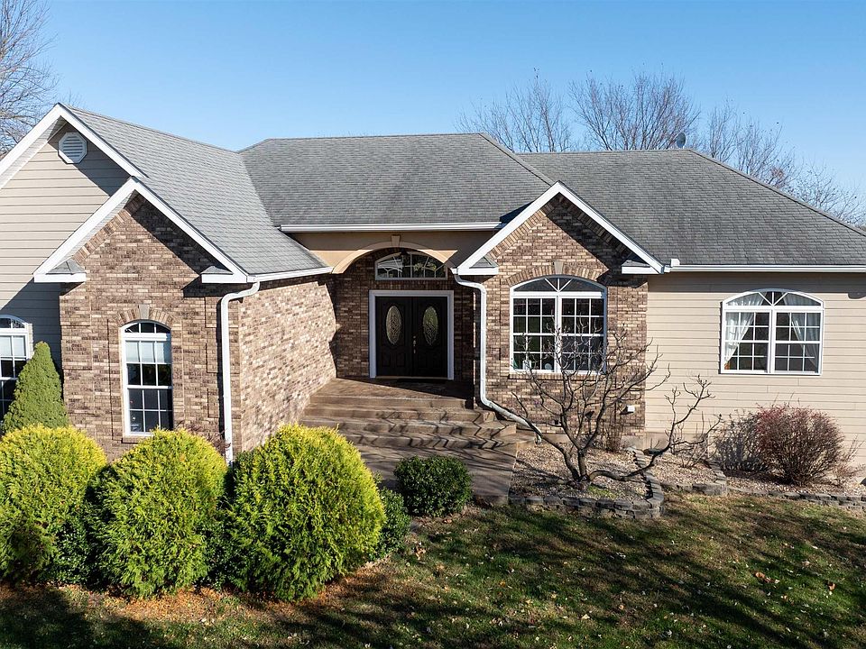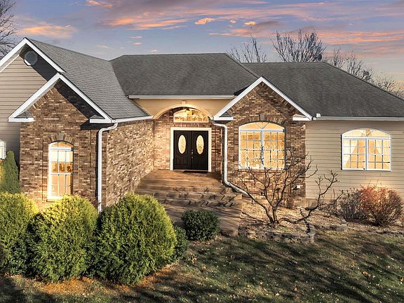Situated on 8.56 serene acres, this stunning 5 bed, 3.5 bath home offers the perfect blend of upscale living and homestead ready amenities, all just minutes from Sedalia and Cole Camp. The main floor features an open layout with large windows that provide abundant natural light throughout. The kitchen, dining, breakfast, and hearth rooms are arranged to flow together, allowing multiple seating options and making the main level ideal for hosting large gatherings. The primary suite is located on the main floor and includes a fully tiled jetted jacuzzi tub and direct access to the large back deck through French doors. Additional bedrooms are thoughtfully split between the main and lower levels, providing flexible living arrangements. This property is well suited for homesteading, hobby farming, or anyone seeking usable acreage. The yard includes multiple fenced sections with three convenient gates for pets, plus an additional fenced area accessed through an 18’ gate that leads to a stocked pond. There are two large raised garden beds, five steel planters, an outbuilding with a lean-to providing additional storage options. There is also a windmill on the property that can be connected back up to be a working windmill. The walkout lower level offers living space that feels bright and open thanks to its large windows and access to the outdoors. The basement includes two bedrooms, a full bath, a second kitchen, and a large living area, making it ideal for guests, multigenerational living, or separate quarters. The laundry room is also located downstairs and includes a dog-washing station. Additional updates have been completed throughout the home, making it move in ready. Whether you're looking for space to spread out, room for animals and gardening, or the peace of a rural setting without sacrificing proximity to town, this property offers a unique opportunity.