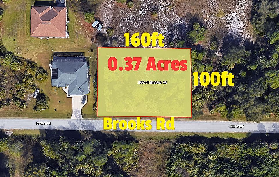 4 Residential Building Lots in South Punta Gorda Heights totaling 0.37 Acres on a paved street. The requirement to build is a minimum of 2 Lots. Combine all the lots together and create your own country estate. 4 Side-by-side lots when combined will be an extra-large 160 wide x 100 deep. Or you can build 2 houses, live in one and rent the other for passive income. These lots are located in a quiet area of South Punta Gorda Heights no HOA's or deed restrictions and NOT in a Scrubjay Zone, they are ready for you to build your DREAM HOME! detached garage, ample space for gardening. Nestled between Charlotte Harbor Preserve Park and the Tamiami Trail the peaceful community of South Punta Gorda Heights is located conveniently close to I-75 just waiting for you to build your Florida home. Close proximity to all the great amenities the city has to offer such as shopping, entertainment, restaurants, and much more! Great area for the avid outdoorsman or nature lovers alike! World-class fishing, golfing, beaches, beautiful rivers and so much more! Your 'piece of paradise' in Florida is calling! BUILD YOUR DREAM HOME HERE THIS IS WELL WORTH THE DRIVE BY, Ideal location and VALUE PRICE! THIS WILL GO FAST... CALL TODAY!! Why Florida? People from all over the country who want to escape the cold and dreary winters from the North and live in mild weather, where there is abundant sunshine, some of the best fishing in the world, amazing tourist attractions, and a relaxed Florida lifestyle, have been flocking to Florida for years. In fact, the population of Florida is growing at a rate of 300,000 per year and these new residents all need somewhere to live! Plus, there is no state tax, which is another reason why Florida is one of the most popular places in the world to retire. Asking Price: $ 18,300 Size (Acres) 0.37 Parcel Number: 412333402023 Address: 26344 Brooks Rd City: Punta Gorda County: Charlotte State: FL Zip: 33955 GPS: Zoning: Vacant Residential, Site Built or Modular Homes Only Water: Well Needed Sewer: Septic Needed Power: Power Pole on Street Road Access: Paved Type of Terrain: Flat Wooded Property Tax: $684.50 Association Dues: None Dimensions: 160ft Frontage x 100ft Depth Int: Z105 * All measurements and property lines are Approximate*