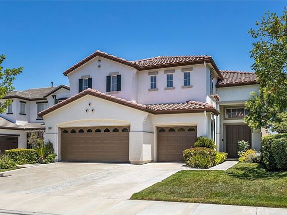 Welcome to this Executive former Model Home with the best VIEWS Stevenson Ranch has to offer! Immediately notice the attractive curb appeal with the beautifully landscaped front yard and refreshed exterior paint accents. Walk in and experience over 3,100 sq. ft. of open living space with 4 bedrooms (1 down,) 3 full baths, formal living and dining room, great room, loft (optional 5th bedroom), laundry room and a 3 car garage. Situated on the view side of the street this nearly 6,000 sq. ft. lot boasts incredible mature landscape and exceptional views of the entire Santa Clarita Valley. Experience soaring cathedral ceilings, designer touches throughout, inviting paint selections, custom window treatments, coordinating cabinetry and counters, decorative wallpaper accents, custom wood and iron bannister, recessed lighting and huge windows filling the home with natural light. The spacious kitchen includes oak colored cabinetry, granite counters, matching backsplash, large center island with bar seating for 2, and a walk-in pantry! The formal dining room has plenty of space to host large gatherings and is accented by a gorgeous chandelier. The great room includes a cozy fireplace, built ins and more views! The downstairs bath features a tub and shower and is adjacent to the downstairs bedroom, perfect for guests or in-laws. The huge Primary Suite features a large foyer with built-ins for your coffee bar and extra storage, 2 large walk in closets and a spacious romantic balcony to take in the expansive views of your gorgeous backyard and neighborhood. The spa inspired ensuite bath includes dual sinks, jetted tub, walk-in shower, and a separate vanity area with tons of additional storage. The secondary bedrooms are generous in size and have ample closet space. The hall bath has dual sinks, tiled counters and separate shower room. Saving the best for last...Walk outside and and find one of the most incredible VIEWS in Stevenson Ranch. The expansive backyard has plenty of room to add a pool and still have space for play and entertainment. Walking distance to several parks including one of the most popular parks with basketball courts and views of the Santa Clarita Valley. Enjoy the conveniences of being just minutes from multiple shopping centers, award winning schools, public transportation and easy access to the freeway.