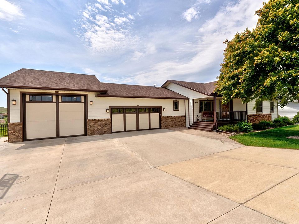 Step into exceptional living after just a 5-minute drive from Rapid City. This ranch style home is perfectly designed for comfort, style and functionality. The moment you arrive, you’ll be impressed by the expansive curb appeal and oversized heated and air-conditioned garage—ideal for multiple vehicles, storage, or hobby space with hot and cold-water lines. Inside, enjoy the elegance of engineered hardwood floors that flow throughout the main living areas, offering both durability and sophistication. The kitchen features sleek quartz countertops, stainless steel appliances, gas range, and ample space for entertaining or daily living. The luxurious primary suite is a true retreat, boasting an amazing spa-inspired bathroom with premium fixtures, dual vanities, a sauna, and a walk-in steam shower. Four spacious secondary bedrooms provide flexibility for guests, a home office, or a growing family. The two additional bathrooms are updated. The walkout basement features an expansive recreation room with built in bar, gas fireplace and reading nook under the stairs. An all-home generator ensures uninterrupted comfort and peace of mind, while the large, beautifully landscaped yard offers endless possibilities for outdoor living and recreation. This home effortlessly combines upscale amenities with practical design in a sought-after setting. Don’t miss your opportunity to own this exceptional property.