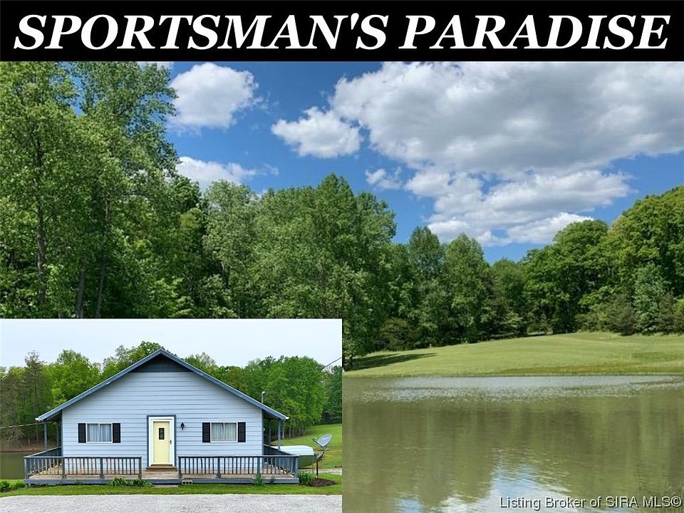 AUCTION!!! SPORTSMAN’S PARADISE with a SPRING FED LAKE!! This very private, mostly wooded 35.7+/- acre tract features a 1.5-acre spring fed lake with 20' dam (stocked w/Bass, Redear, & Catfish) fed by 3 springs, an abundance of wildlife including large deer, a 1968-built cottage style 1200 SF 4BR/1.5BA home & detached garage! Trails cleared through mature woods make for your choice of hiking, biking, or horseback riding. Ultimate outdoor recreation & peace of mind right in your backyard while being conveniently located only 7 mins from the Memphis I-65 Exit 16 which is only 20 miles from Louisville, KY!! Property is estate owned and this is first time on market. Interior features: 1200 SF upper level; 1200 SF lower level; upper level features family room, walkout to covered rear deck & 4 bedrooms; lower level features family room w/fireplace, walkout to enclosed porch, eat-in kitchen, bathroom & half-bath, utility room, office/storage room, & additional room. Exterior features: new 2023 asphalt-shingled roof & gutters; wrap around deck covered at back; enclosed concrete block walkout porch w/creek stone wall; amazing views; gravel drive & large gravel parking area/turnaround. Lot features: marketable timber; open back yard; firepit; an outdoor activity paradise! ALSO includes an 1150 SF metal-sided detached garage & carport w/partial concrete floor. Family owned since 1965! Take your opportunity! Bid now at https://bid.beckortauctions.com/auctions/catalog/id/36025/