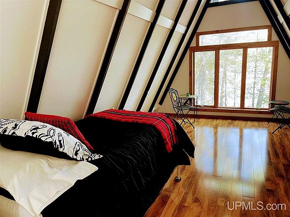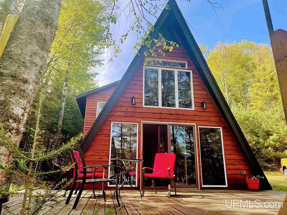 Rare find on Dinner Lake! Seller reports awesome Bass fishing, catch them right from the dock. This quiet, private, scenic home is situated on a beautiful, wooded lot with 200' of frontage in the peaceful bay. Move in condition, clean and well maintained. Front of home is glass affording beautiful lake views and lots of natural light. Newer appliances, well and furnace. No visible neighbors from the home. This could be your year-round home or up north getaway. It's up to you!