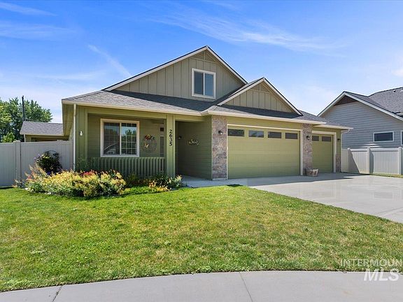 Darling craftsman cottage nestled in a quiet culdesac! This home sits on nearly 1/3 acre and features desirable single level with split-bedroom floorpan. Main living space boasts soaring vaulted ceilings, open-concept living, tons of storage. Wall-to-wall windows flood the interior with natural light and frame the view to the back yard. Kitchen is packed with upgrades including custom cabinetry, beautiful tile backsplash, stainless appliances & solid surface counters. Warm your space with the new wood stove, or enjoy gardening in the greenhouse. Additional garden shed keeps the main garage free of storage items, and the backyard covered patio is ideal for entertaining. Looking for country living in a quiet community just 45 minutes from Boise, this is it!