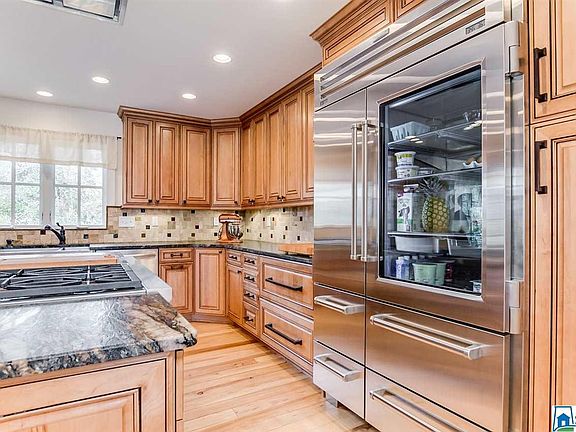 Beautiful 4 bedroom 4 bath home will feel like your own private retreat! The entryway is graced with vaulted wood ceilings, beautiful staircase, gleaming hardwood floors & opens to a spacious living area with floor to ceiling stone fireplace & arched doorways. The kitchen boasts Wolf Appliances, leathered granite countertops, large center island & ample cabinet space for storage. Upstairs features spacious bedrooms, beautifully tiled bathrooms & a master suite with large walk-in closet offering storage shelves & organizers. Full in-law suite in basement, with separate entry & HVAC system. Sprawling entertainment space greets you in the outdoor living area featuring a large fenced yard with mature landscaping, in-ground pool, multiple seating & dining areas with plenty of space to relax in the sun or shade while you enjoying Alabama summers. Additional features include 2 person heated whirlpool tub with waterfall feature. Laundry on main level. Walking distance to Vestavia Schools.