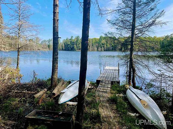 Rare find on Dinner Lake! Seller reports awesome Bass fishing, catch them right from the dock. This quiet, private, scenic home is situated on a beautiful, wooded lot with 200' of frontage in the peaceful bay. Move in condition, clean and well maintained. Front of home is glass affording beautiful lake views and lots of natural light. Newer appliances, well and furnace. No visible neighbors from the home. This could be your year-round home or up north getaway. It's up to you!