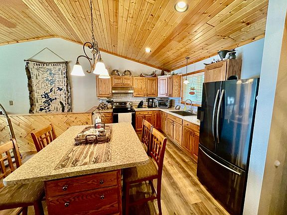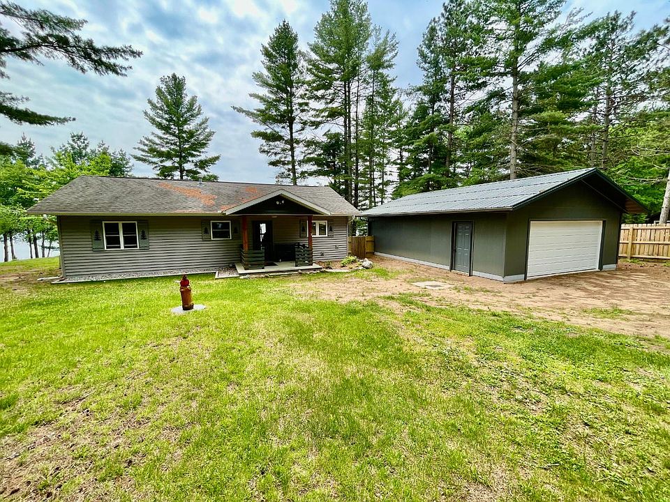 A tremendous home on Lower Nine Mile Lake. The Nicolet National Forest is literally across the street from this 2 bedroom, 2 bath home. There are million-dollar views from the great room as the home faces south for all day sun. The home was totally redone by Jim McVane who is also a neighbor. Some features include, 2 x 6 walls, pine ceilings, upgraded flooring, island kitchen, premium Samsung appliances, LG washer and dryer, Smart siding, generator, a newer 24’ x 32’ detached garage. The roof and septic are in good shape and so is the pier. Lower Nine Mile Lake offers a quiet setting and 646 acres and is located 15 minutes east of Eagle River.