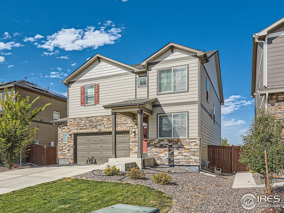 Come check out this charming 2 story D.R. Horton home in Johnstown Village. This spacious abode built in 2021 boasts four generously sized bedrooms along with three bathrooms including a main level powder room. Eye-catching kitchen highlights granite countertops, stainless steel appliances, large pantry, 42' cabinets, and beautiful island. Wide plank laminate flooring and upgraded carpet comfort your feet as you venture through this masterpiece. Oversized finished two car garage. Decent sized backyard including a covered patio and dog run/play area. Very peaceful neighborhood in the RE-5J Johnstown School District. Experience the feel of a new construction home in an up and coming developed subdivision of Johnstown. Do not miss out on this gem!