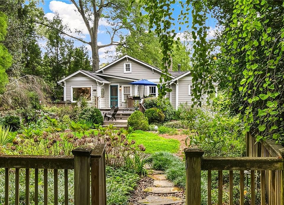 Welcome to 2635 Pangborn, a one-of-a-kind 2 bedroom, 2 bathroom bungalow in the heart of Oak Grove that blends timeless character with modern updates. Set on a lush, park-like lot with mature landscaping, this home offers a true retreat with expansive outdoor living spaces, including a stone patio and a large deck overlooking a serene pond fed by a gentle brook. The sounds of flowing water and waterfalls create a peaceful backdrop, while fish in the pond add to the charm of this private garden oasis. Inside, every detail has been thoughtfully refreshed. Original hardwood flooring has been beautifully preserved, and the entire home has been freshly painted. The renovated eat-in kitchen features sleek quartz countertops, white Shaker-style cabinets, trendy open shelving, and a vent hood, all bathed in natural light with tranquil views of the backyard. Both bathrooms have been fully updated—the primary suite boasts a seamless walk-in shower, double vanity, and ceramic tile surround, while the secondary bath offers a soaking tub perfect for relaxation. The primary bedroom also includes a flexible dressing area or office nook. This home maintains the cozy charm of its original bungalow design, with a living room that flows easily to the outdoors—ideal for both everyday living and entertaining. Additional highlights include a covered carport with turn-around space, a versatile shed that can be used for storage, hobbies, or even converted into an ADU or garage, and a large attic that offers easy upward expansion potential. Whether you’re sipping coffee on the deck, enjoying the sounds of waterfalls and birdsong, or unwinding in your private owner’s suite, this property offers a rare combination of updates, character, and tranquility.