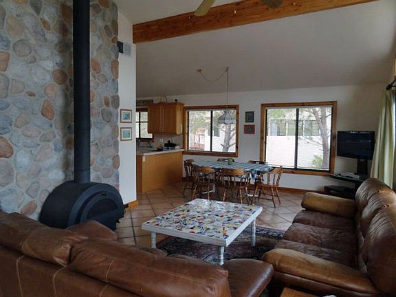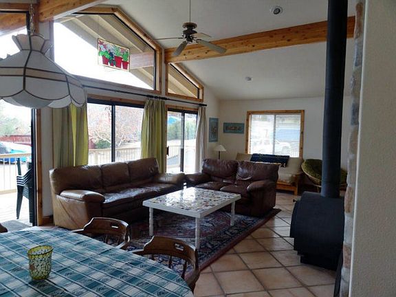 A very well maintained cabin in Oak Shores features an open vaulted beamed living room and kitchen where you can enjoy mountain views and partial lake views. Home was constructed with low maintenance in mind and has hard plank siding and low maintenance deck. Plenty of parking with a 22 foot garage with an extra wide door and a carport. Don't miss out on this one of a kind gem.