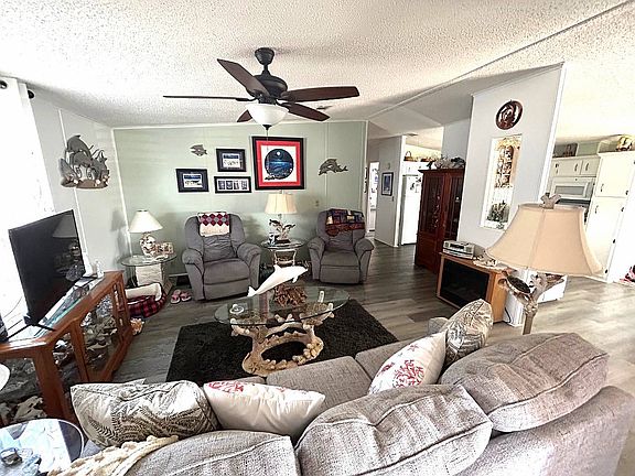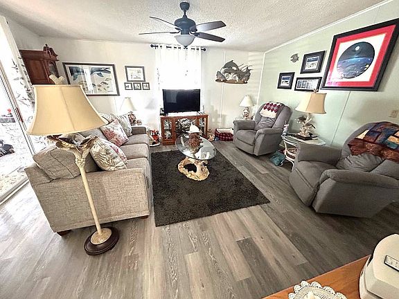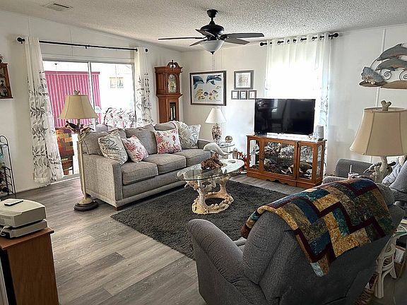 2BR 2BA 1040 sq ft. Furnished, eat in kitchen, New laminate floors, loads of kitchen cabinets, new raised toilets, new gray carpet in bedrooms, windowed and AC in Florida room, extra-long covered carport, large shed, large back yard, covered patio, beautifully maintained home, Ac was replaced in 2017, New roof 2022, golf cart included SB3910