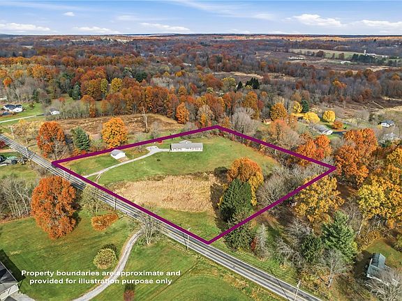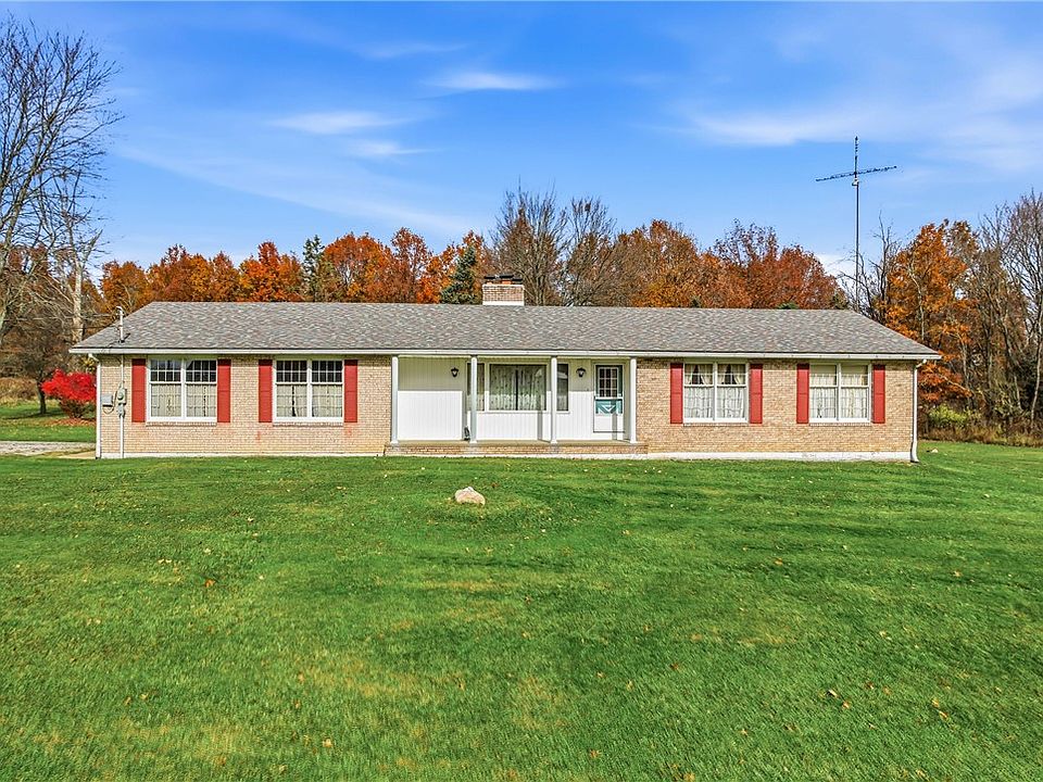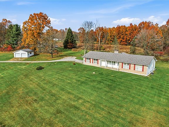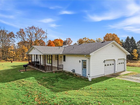 Classic ranch on serene, country lot. Well-maintained 3 bedroom, 1.5 bath home offers 1 floor living in a scenic setting. Immerse yourself in the warmth & love of yester-years decor. Home is a pristine blank canvas, ready for your personal updates & vision. Convenient 2-car attached garage grants access to entry w/ 1st-floor laundry hookup & half bath. Nostalgic kitchen is perfect for family gatherings, complemented by a spacious living room w/ a cozy fireplace (unused) as its centerpiece. The primary bedroom offers dual access to the main full bathroom which offers both a tub/shower combo AND a step in shower & dual sinks, while 2 additional bedrooms round out the main floor. Spacious back porch overlooks the sprawling, private backyard, your personal country oasis. Bonus 2-car detached garage, a hobbyist's dream! It's the perfect workshop, storage for equipment, ATVs, or anything your heart desires. Offering 4 car total garage capacity! All on 3.26 acres convenient to amenities.