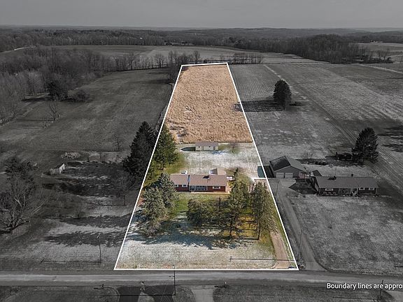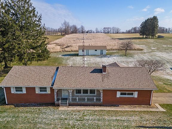 5+ Acre countryside setting that's close to shopping, restaurants, I-71 and SR 13. All brick ranch home with 3 bedrooms and 3 full baths offers great possibilities for any family. Updated kitchen with granite counter tops and stainless steel appliances, large main floor laundry room, inviting sunroom with vaulted ceiling, cedar closets, hardwood floors, an extra canning kitchen and a cool retro bar in the lower level family room are sure to please. 24'x14' outbuilding with electric, overhead door and wood stove offers nice workshop space and storage for your outdoor toys. So much to offer here!